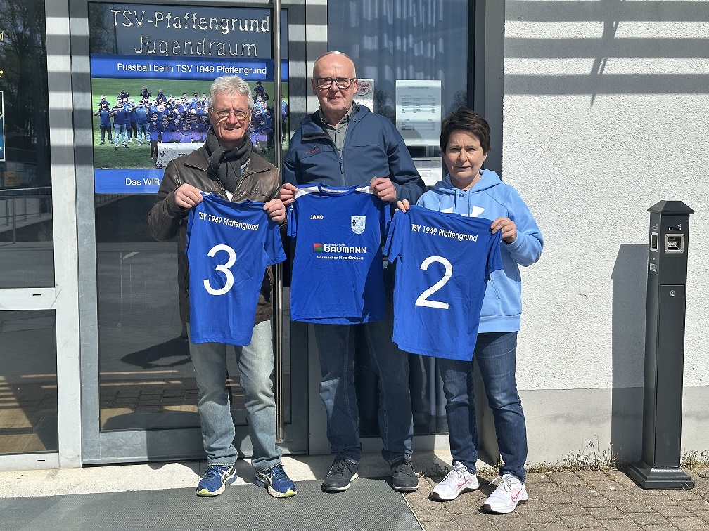 Große Freude beim TSV Pfaffengrund: Dank der großzügigen Spende des Ingenieurbüros Baumann, das auch die Sanierung der Sportanlage begleitet, erhielten gleich zwei Jugendfußball-Mannschaften nagelneue Trikotsätze.