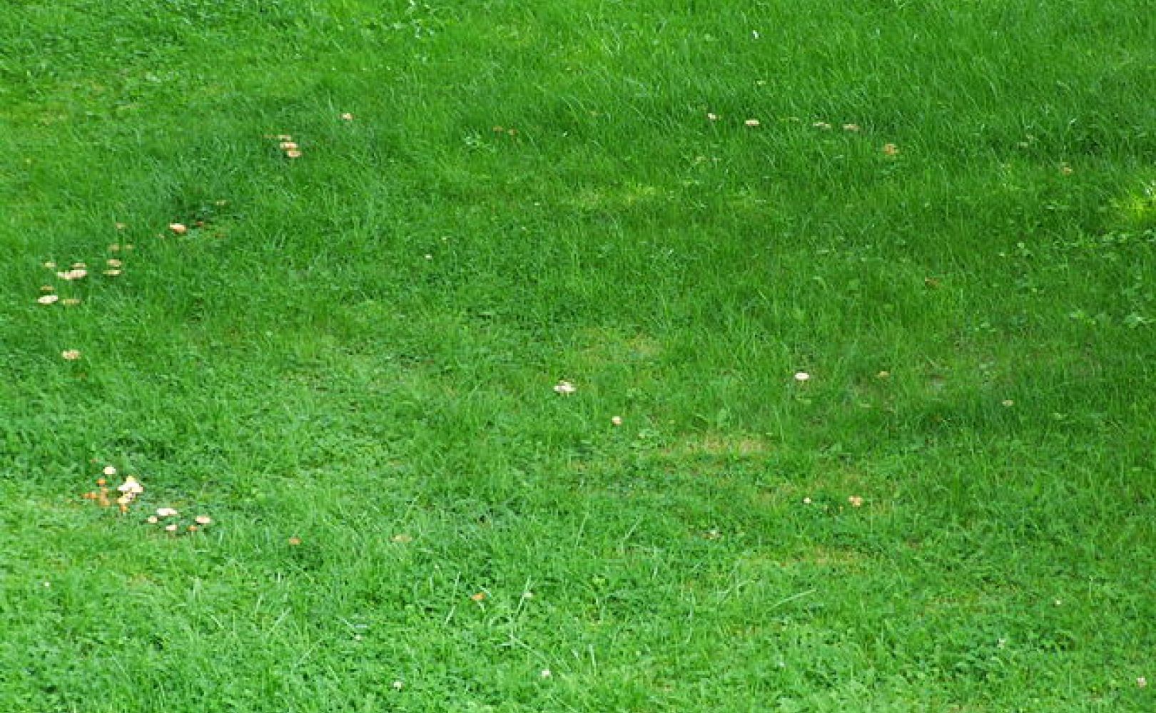Im Rasen zeigen sich dunkelgrüne Ringen (in denen ebenfalls Hutpilze wachsen können).