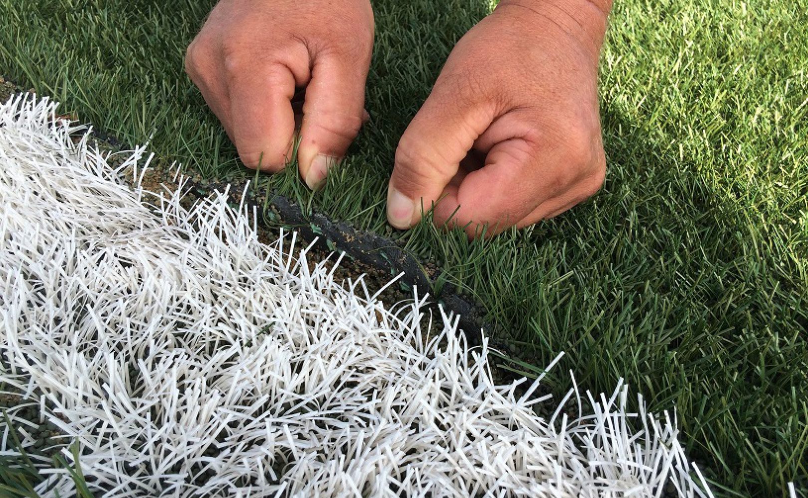 Um die Haltbarkeit des Kunstrasensystems sowie seine Bespielbarkeit langfristig zu gewährleisten, ist es wichtig, die Verklebung der Linien und Nähte regelmäßig zu kontrollieren und schadhafte Stellen umgehend auszubessern, damit sich diese nicht vergrößern.